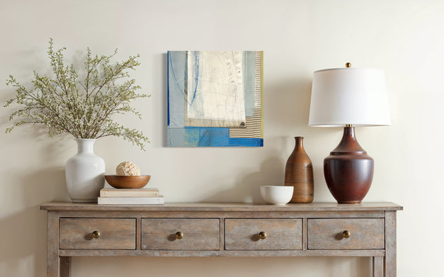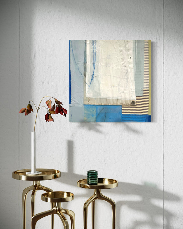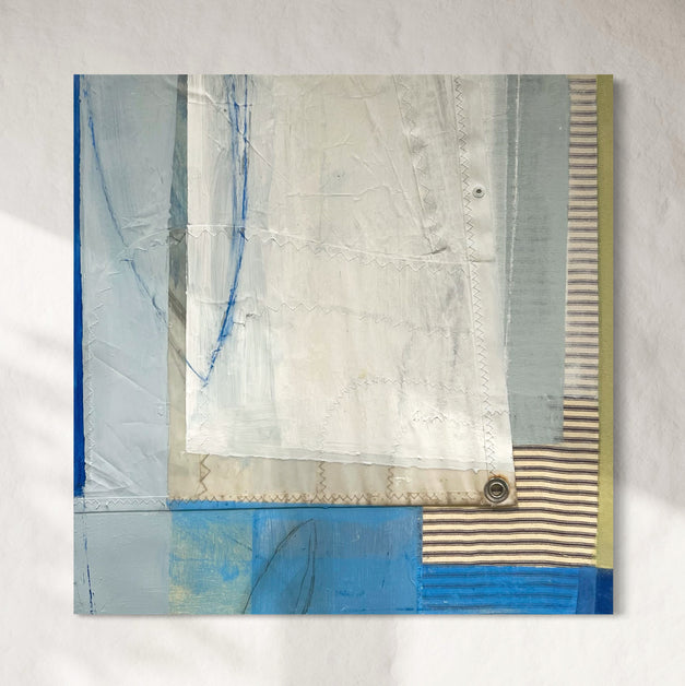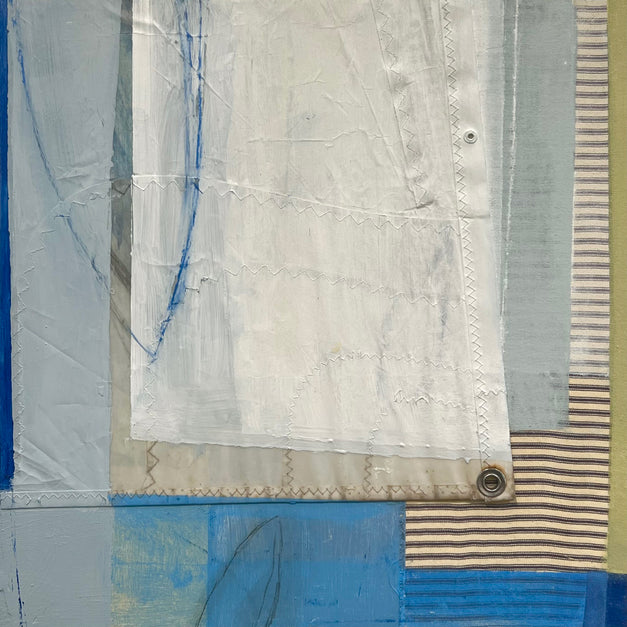 Medium: Mixed Media with Textile and Dacron Sail on Wood Panel