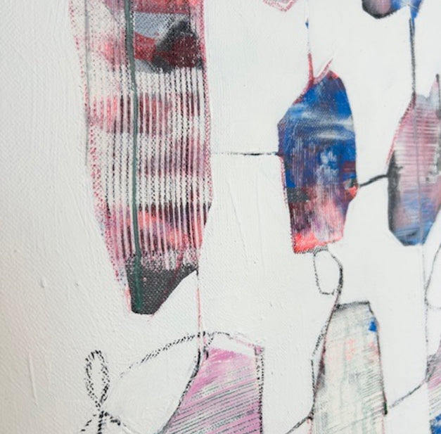 "Art has always served as an outlet for me. The process of creation is profoundly meditative, offering a serene moment amidst life's chaos. Being intentional with my artwork grounds me, providing solace even during challenging times. I try to keep my mental health at the core of everything I do. My current work is the intersection between my artistic process and the emotional and mental revelations I undergo during my practice. Stream of consciousness layered with bright colorful abstractions.