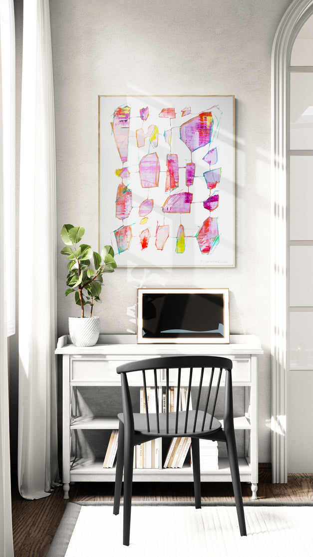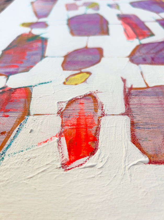 "Art has always served as an outlet for me. The process of creation is profoundly meditative, offering a serene moment amidst life's chaos. Being intentional with my artwork grounds me, providing solace even during challenging times. I try to keep my mental health at the core of everything I do. My current work is the intersection between my artistic process and the emotional and mental revelations I undergo during my practice. Stream of consciousness layered with bright colorful abstractions.