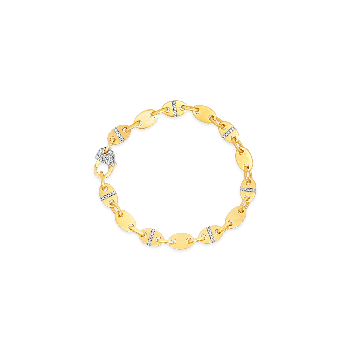 This beautiful 14k gold satin finish diamond oval link bracelet is an eye-catching addition to any outfit. Sparkling and stylish for any special occasion.