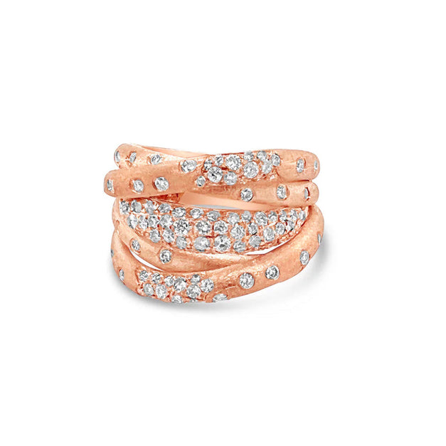 Indulge in luxury with our Diamond Celestial Crossover Ring. Crafted in 14k brushed gold, this ring sparkles with scattered diamonds, adding a touch of celestial beauty to your everyday look. Elevate your style and make a statement with this stunning and timeless piece.