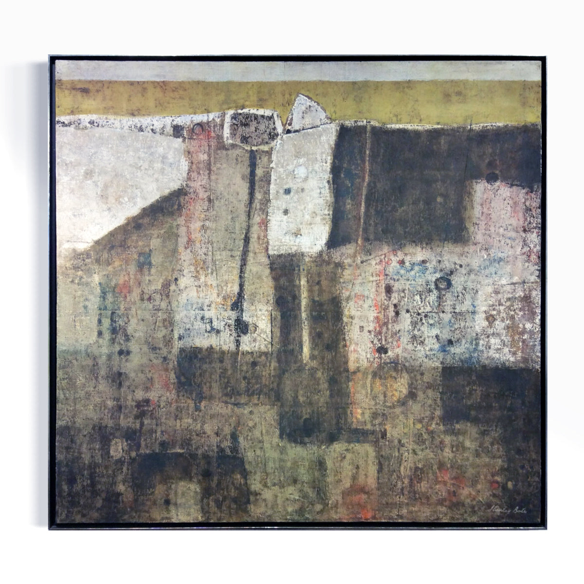 In addition to the New York School influence, many of Bate’s works exhibit a strong connection to the Spanish school, especially the work of Antonio Tapies and Modesto Cuixart. These artists were both part of an avant-garde group known as Art Informel, the Spanish equivalent of Abstract Expressionism. These artists likewise worked in mixed media and introduced objects and texture into their work. Many of Bate’s subjects and titles relate to Spanish locations and words. It is likely that Stanley spent time in Spain and found inspiration there.
