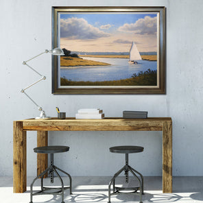 "We are only passing through this lifetime of ours," Pollera said in reference to his work. "This is a revolving window of constant change and taking in the beauty from a visual perspective is fascinating and interesting; that is what fuels my passion. Living within close proximity to the salt marshes and shoreline has enabled me to capture a moment in time. I feel a deep connection with my subject and it constantly inspires me. I hope that I convey a feeling through my paintings that will be shared for generations and reflect our love for the local waters as they are today."