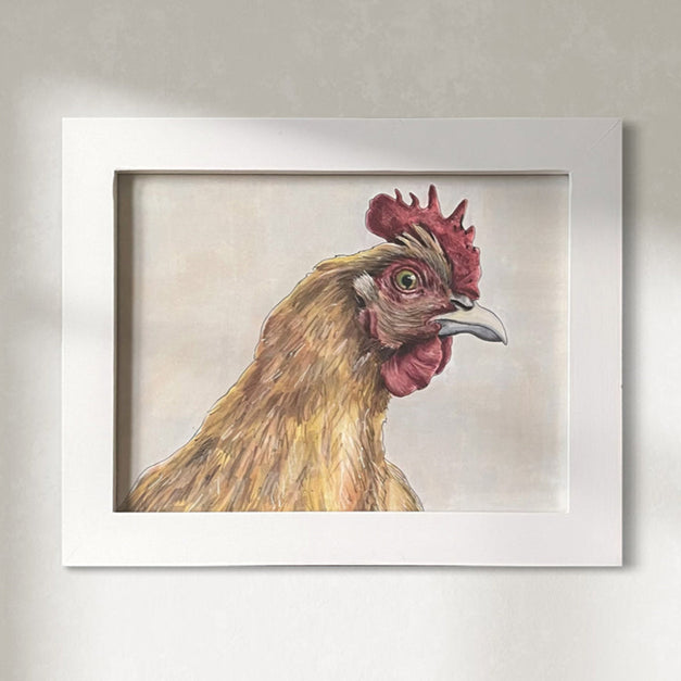 A hand-drawn illustration made with illustration marker, pen, and metallic and matte colored pencil on Strathmore marker paper. Framed in a clean white frame. Ready to hang.