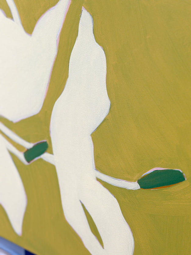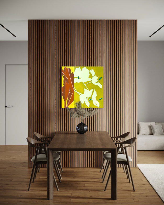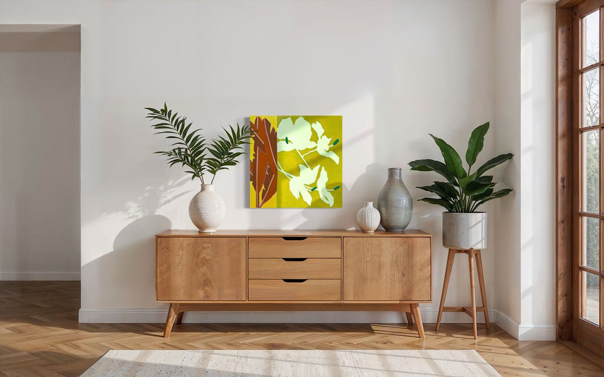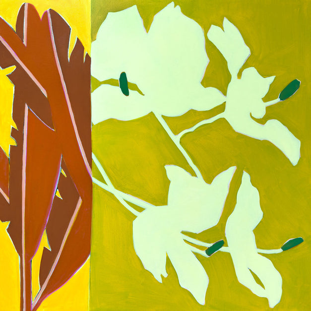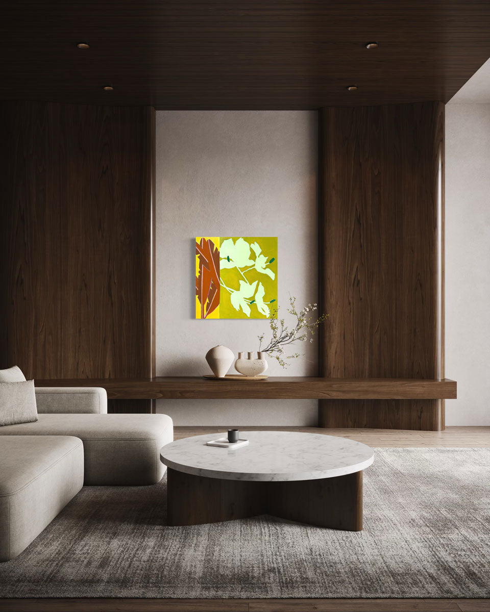 "I enjoy pulling inspiration from my favorite vacation destinations (Palm Springs and Hawaii) and combining it with Mid-Century Modern design for my creative choices; translating the beauty and atmospheric feeling of these places into lively marks, vibrant color, and rhythmic movement.