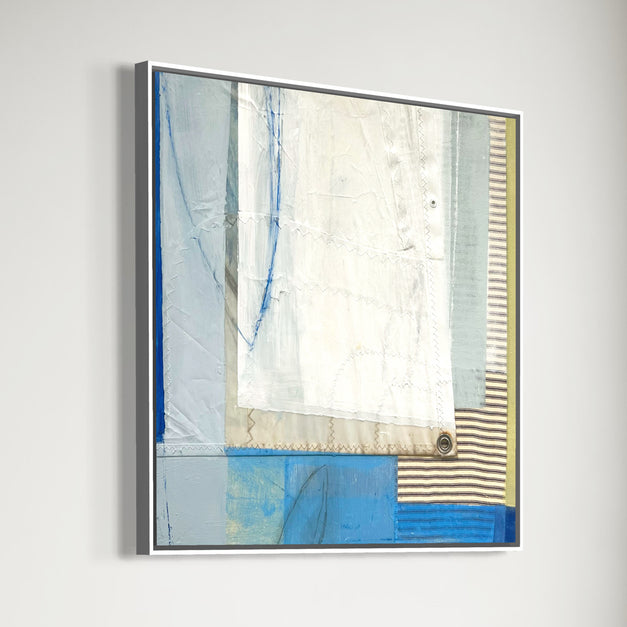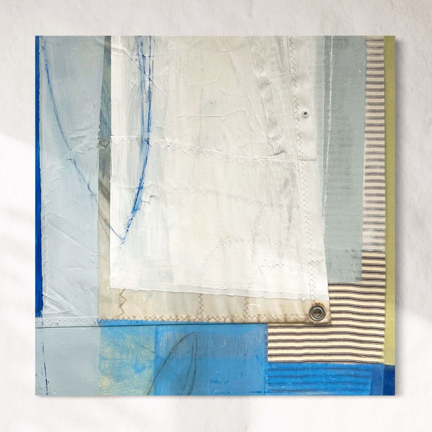Medium: Mixed Media with Textile and Dacron Sail on Wood Panel