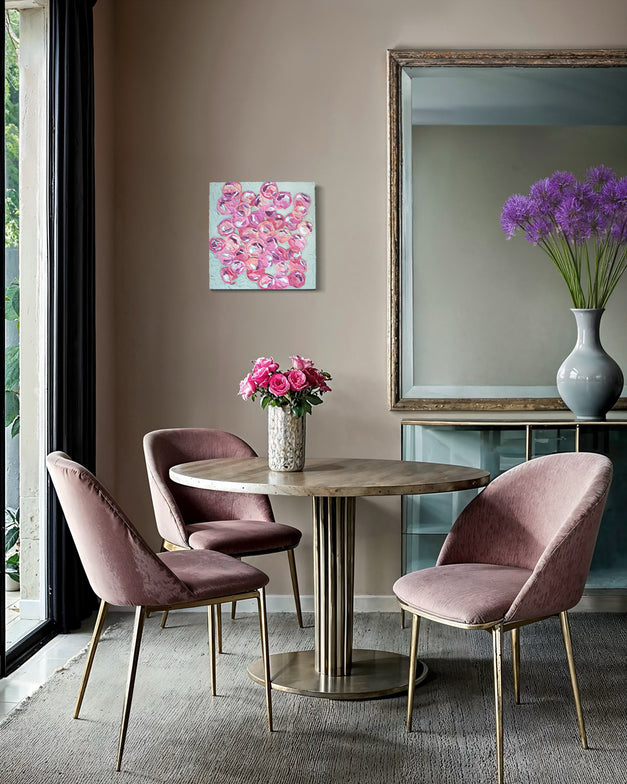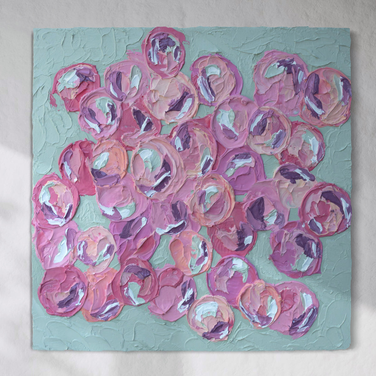 "Some of my work achieves a sense of fluid movement with saturated color, while my newer collection is so textured, it is like frostingI may start out with a plan, but then the painting may decide the direction. My most successful work should be complex yet minimal and look like it was easy, or just happened.”