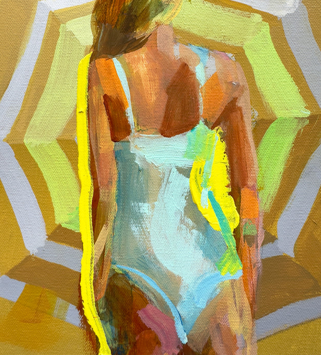 "In the last few years, the subject of the ocean has spread throughout my work. I am floating intuitively among deep blues and bright greens. This series is about transformation, being reborn. There is something sacred about water, and I immerse myself on the rhythms of the tide, its constant movement and its mesmerizing reflections. A deep breath, a pause, connecting with the senses, closing eyes underwater, hearing the silence from the ocean while being aware of being held by the water.“