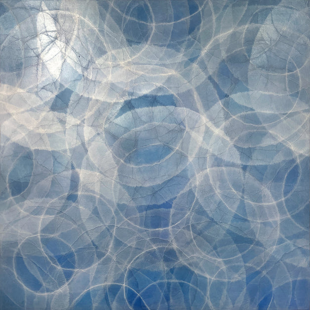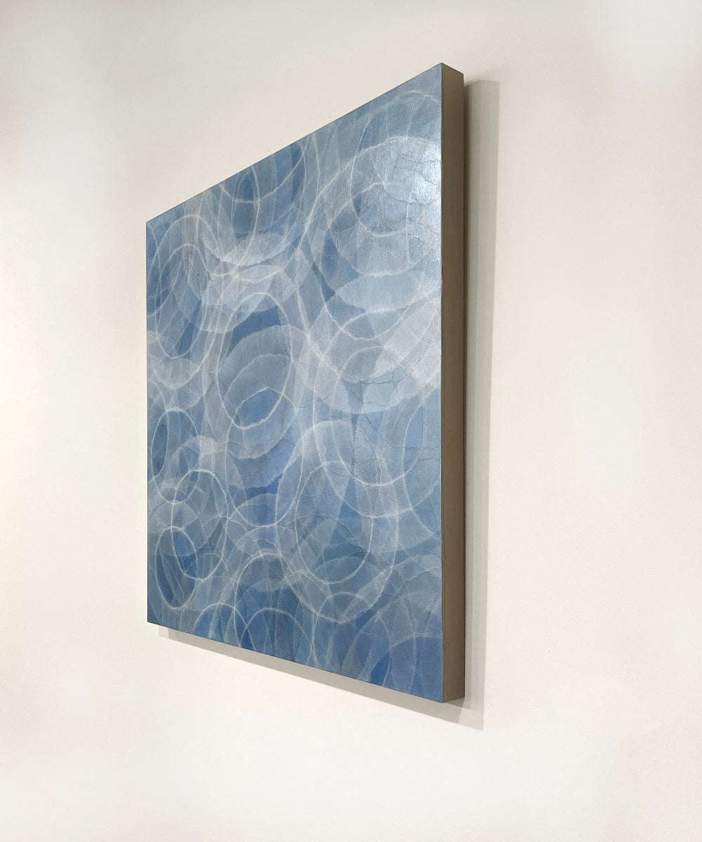 “I have never known any other path to take except that of an artist," Mudre says. "The concept of infinity has been the inspiration for my work, employing the circle, the perfect form, as a muse. These mages reference microscopic worlds, cellular growth, auras, the cosmos, and places unseen, only imagined. The square format allows for a field of pattern that continues equally in all directions, reinforcing the feeling of infinity. My paintings begin with the application of metallic leaf. Using both additive and subtractive techniques, multiple layers of glazed color are built up. The underlying metallic leaf not only adds a rich tone to the work, it allows the light to refract off the surface of the finished painting. A variety of tools are used including brushes, scrapers and rags giving the paintings a very nuanced texture and complex depth of color. The combination of reflective metal leaf and the many layers of glazed color allow the painting to appear subtly different, depending on the light and viewing angle, creating a constantly changing visual experience. The result is a record of a journey that is both a sensuous and a creative exploration."