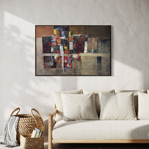 Stanley Bate was undoubtedly exposed to the varied styles and techniques that were emerging during the formative years of the New York School. Mark Rothko and Robert Motherwell were formulating their versions of color field paintings. Joseph Cornell was experimenting with assemblages, collage and the use of different types of textured paints. Jackson Pollock was adhering objects such as buttons and coins into his early works, while Louise Nevelson was using found objects. Helen Frankenthaler added sand to her early paintings. The New York School artists were undermining traditional fine art by using mixed media and non-traditional methods.
