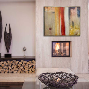 Stanley Bate absorbed these varied influences and soon his early realistic landscapes and still-lifes were replaced with something entirely new. The influence of Cubism, notably the flat shallow space of the picture plane, is obvious in many of Bate’s paintings. Surrealism is evident in Bate’s use of subjects from myth, primitive art and antiquity, along with the Automatism-like line work in his more linear images. The unfettered experimentation of the New York School is everywhere in Stanley Bate’s work. We see nods to color field, collage, the mixing of textures into paint, mixed media, the inclusion of found objects and thick, luscious impasto.